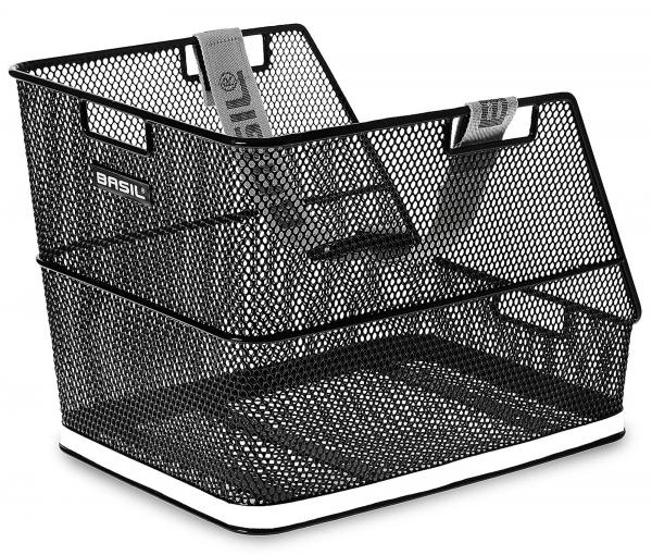 Der Basil Class ist ein trendiger und praktischer Schultaschen-Korb für Schüler und Studenten, und bietet sich sehr gut für jede Fahrradfahrt zur Schule oder Universität an. Dieser praktische Fahrradkorb aus der Basil Kollektion ist in der Farbe schwarz erhältlich. Der Fahrradfahrt kann sowohl von Jungen als auch Mädchen genutzt werden, um eine Schultasche oder Rucksack zu transportieren. Es handelt sich um eine perfekte Art und Weise deine Schultasche sicher auf dem Fahrrad mitzunehmen, und zudem verhinderst du, dass deine Schulbücher auf der Straße landen. Der Basil Class Fahrradkorb lässt sich einfach auf dem Gepäckträger deines Fahrrads montieren. Dies führst du leicht mit dem beigelieferten Befestigungsmaterial aus. Die Bewegungsfreiheit während des Fahrradfahrens wird durch die abgeschrägte Seite am nächsten zum Sattel gefördert. Der Fahrradkorb wird darüber hinaus mit einem abnehmbaren Band geliefert. Eine Schultasche oder Rucksack ist damit stets fest auf dem Fahrrad abgesichert. In Dunkelheit ist man gut sichtbar auf Grund des Reflektorstreifens, der sich an der Unterseite des Fahrradkorbs befindet. Somit ist man immer sicher unterwegs.