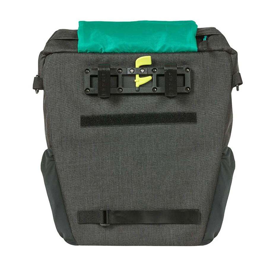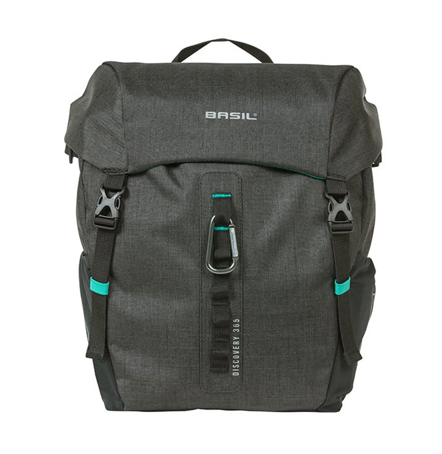 Du suchst eine sportive, leichte und kompakte Einzelfahrradtasche? Dann ist die Basil Discovery 365D Einzelne Fahrradtasche M genau das Richtige für dich! Die schwarze Tasche besteht aus Polyester und ist mit der mitgelieferten Regenhülle wasserdicht. Diese einzelne Fahrradtasche für den Gepäckträger des Fahrrads hat ein Fassungsvermögen von 9 Litern und kann mit dem Hook-On System problemlos am Gepäckträger eingehakt werden. Außerdem verfügt die Tasche über einen Karabinerhaken für Zusatzteile und über einen abnehmbaren Schultergurt. Die Tasche ist mit auffälligen blaugrünen Akzenten dekoriert. Mit dem Henkel kannst du die Tasche bequem in jeden Laden mitnehmen. Die Fahrradtasche hat ein Reißverschlussfach an der Klappe und eines an der Vorderseite, einen praktischen Kordelzug, damit deine Sachen an ihrem Platz bleiben, und handliche elastische Seitenfächer. Die Lichtreflexion an drei Seiten machen dich im Dunkeln besser sichtbar.