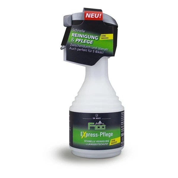 Schnelle Fahrradpflege ohne Wasserschlauch und Schwamm erlaubt dir der F100 Express-Pflege Trockenreiniger. Mit dem Fahrradreiniger sprühst du die leicht bis mittel verschmutzten Stellen einfach ein und wischt sie anschließend nach – und das war´s dann auch schon mit der Zwischendurch-Aufhübsch-Aktion deines Bikes. Damit ist sie optimal geeignet für die schnelle Fahrradreinigung unterwegs – oder wenn dir mal die Zeit für eine intensivere Waschaktion fehlt. Dabei ist der F100 Express-Pflege Trockenreiniger auch gut geeignet zur Anwendung an E-Bikes, denen du kein zusätzliches Nass an empfindlichen Stellen zumuten möchtest. Der dosierbare Sprühkopf sorgt für einen präzisen Einsatz des Fahrradreinigers und konserviert die gereinigten Bereiche zugleich vor Witterungseinflüssen.