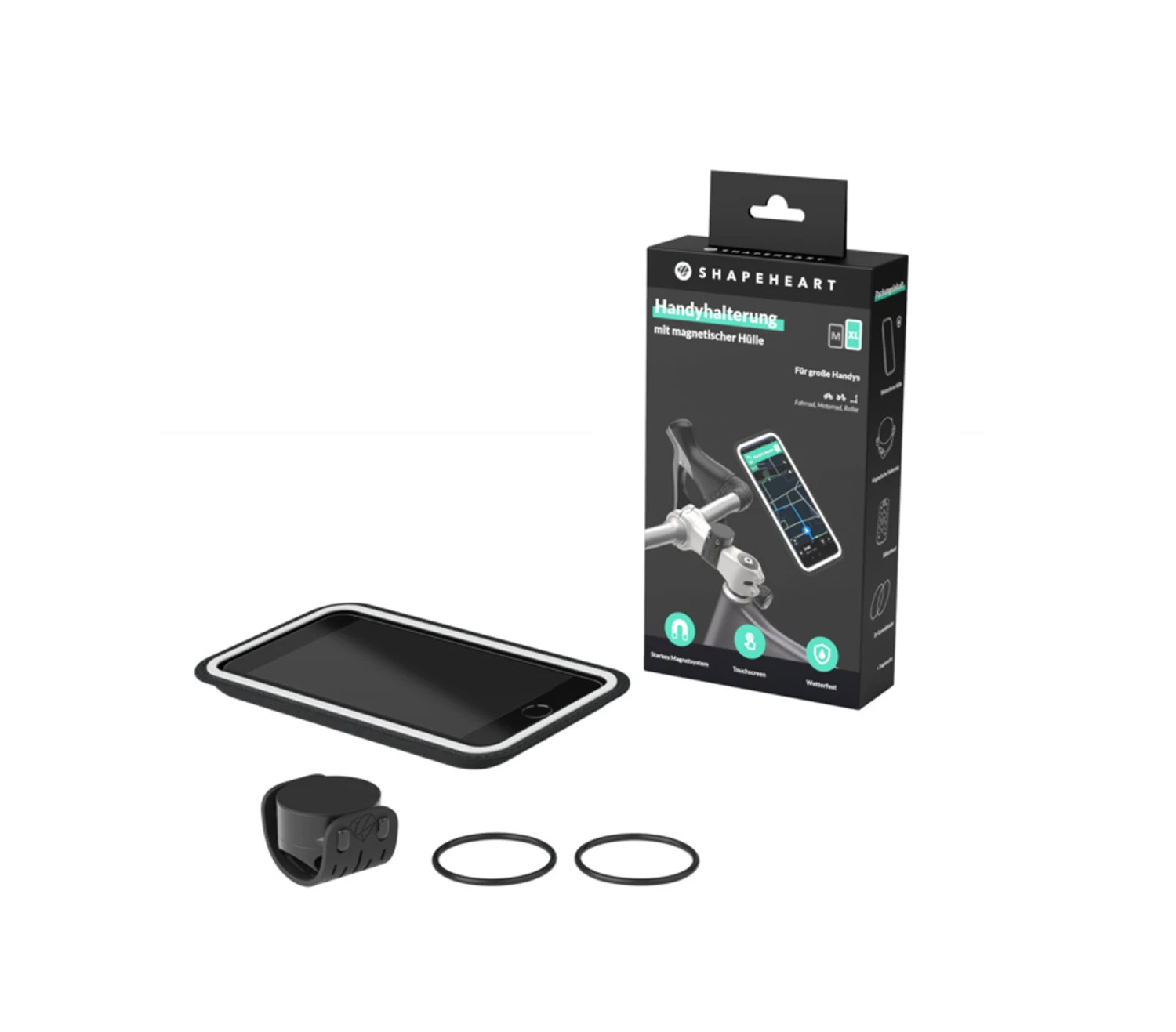 Mit der Fahrradhalterung von Shapeheart kannst du dein Smartphone innerhalb von Sekunden an Deinem Lenker befestigen und es als Navi nutzen. So musst Du dein Telefon nicht mehr aus der Tasche nehmen, um zu schauen, wo du als nächstes abbiegen musst.