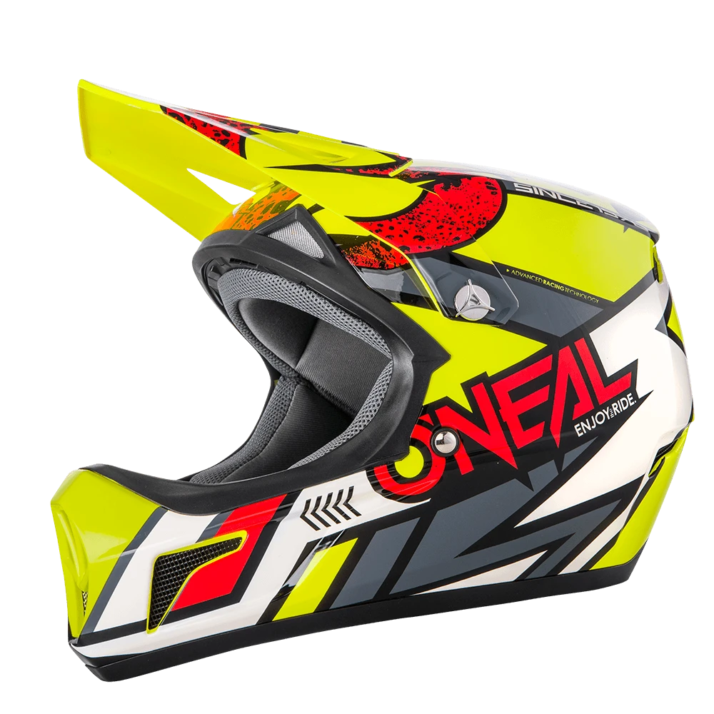 Der Sonus Helm von Oneal wartet mit einem frechen und frischen Design auf, das sich wirklich sehen lassen kann. Nicht nur das Design ist erstklassig, auch die Qualität und die Features sind es 1100 g leicht, weiches und herausnehmbares Innenfutter, höhenverstellbares Visier gegen Steinschläge oder Ähnlichem, Fidlock Magnetverschluss für schnelles Öffnen und Schließen auch mit Handschuhen sowie beschichtete Grafiken auf dem Helm. Perfekt für den nächsten Ritt im Bikepark oder im Downhill.