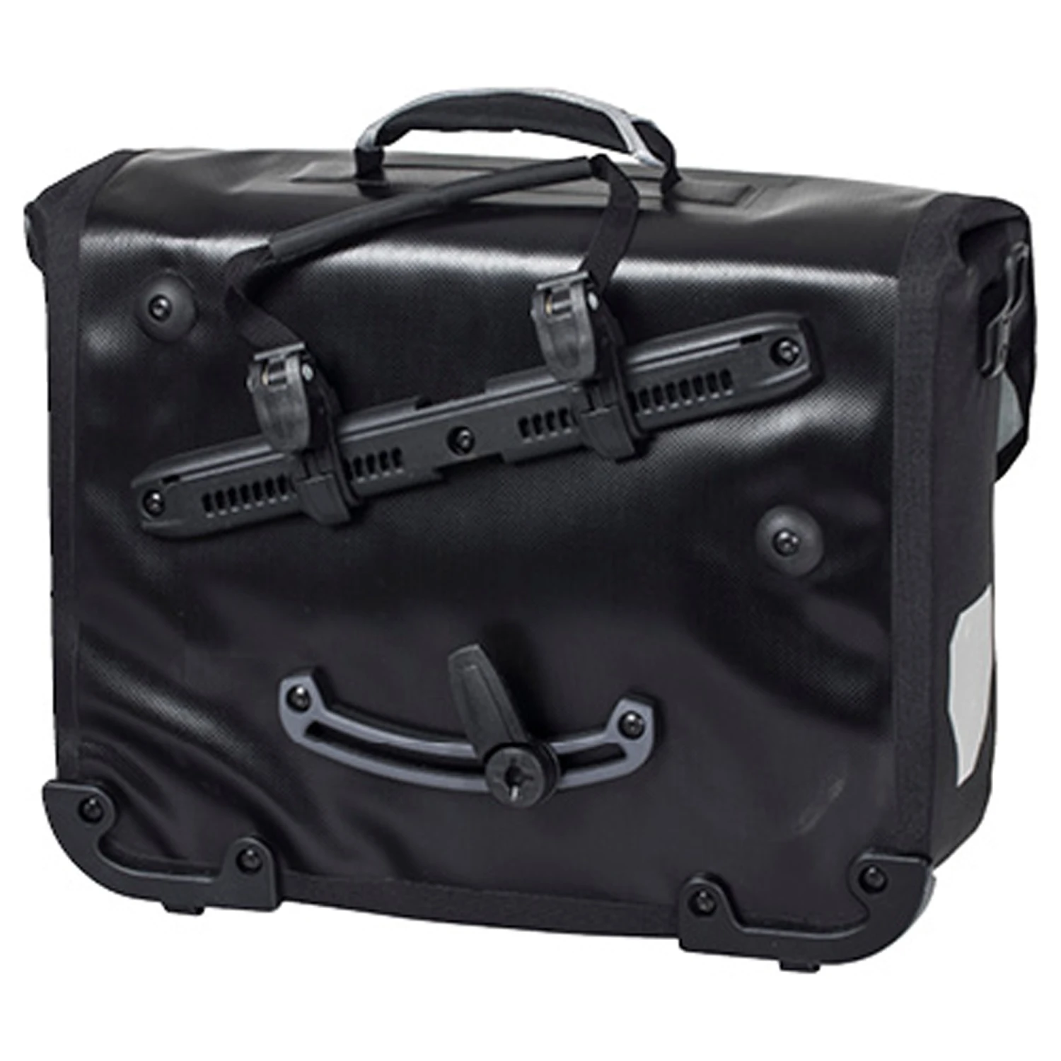 + Links oder rechts am Gepäckträger verwendbar – durch drehbare Halterungsschiene