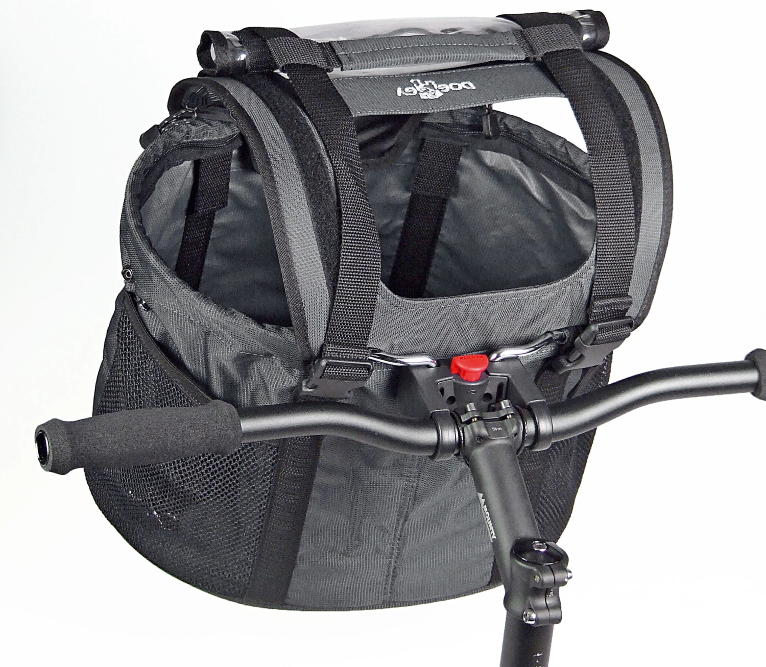 In dieser Lenkertasche können kleine Vierbeiner bis max. 5kg (abhängig vom gewählten Adapter) bequem und sicher mitfahren. Ein einrollbarer Wind- und Regenschutz bietet viele Möglichkeiten, Licht und Luftöffnungen zu schaffen. Seitlich lässt sich die Tasche bei Bedarf auch komplett schließen (die Abdeckung verschwindet im Extrafach). Innen ausgestattet mit Kissen, Bodenöse und einstellbarer Leine. Große Fronttasche für Wertsachen und seitliche Netzfächer. Mit Tragegriff und großem Reflektor. Die obere Abdeckung ist komplett abnehmbar, so ist die Transport Tasche leicht zu öffnen und zu reinigen. Ohne Abdeckung lässt sich die Doggy Tasche auch wie ein Shopper als Einkaufstasche verwenden, wenn der Hund mal zu Hause bleibt.