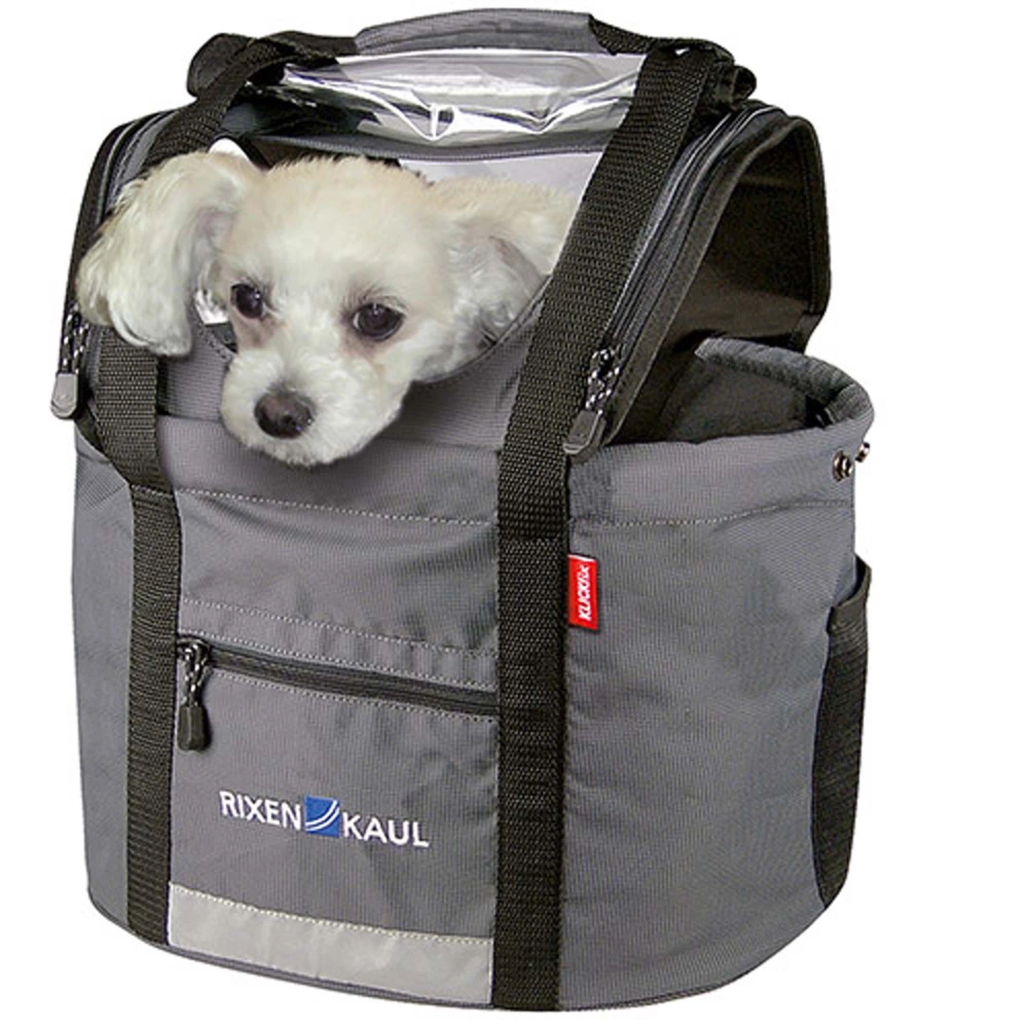 In dieser Lenkertasche können kleine Vierbeiner bis max. 5kg (abhängig vom gewählten Adapter) bequem und sicher mitfahren. Ein einrollbarer Wind- und Regenschutz bietet viele Möglichkeiten, Licht und Luftöffnungen zu schaffen. Seitlich lässt sich die Tasche bei Bedarf auch komplett schließen (die Abdeckung verschwindet im Extrafach). Innen ausgestattet mit Kissen, Bodenöse und einstellbarer Leine. Große Fronttasche für Wertsachen und seitliche Netzfächer. Mit Tragegriff und großem Reflektor. Die obere Abdeckung ist komplett abnehmbar, so ist die Transport Tasche leicht zu öffnen und zu reinigen. Ohne Abdeckung lässt sich die Doggy Tasche auch wie ein Shopper als Einkaufstasche verwenden, wenn der Hund mal zu Hause bleibt.