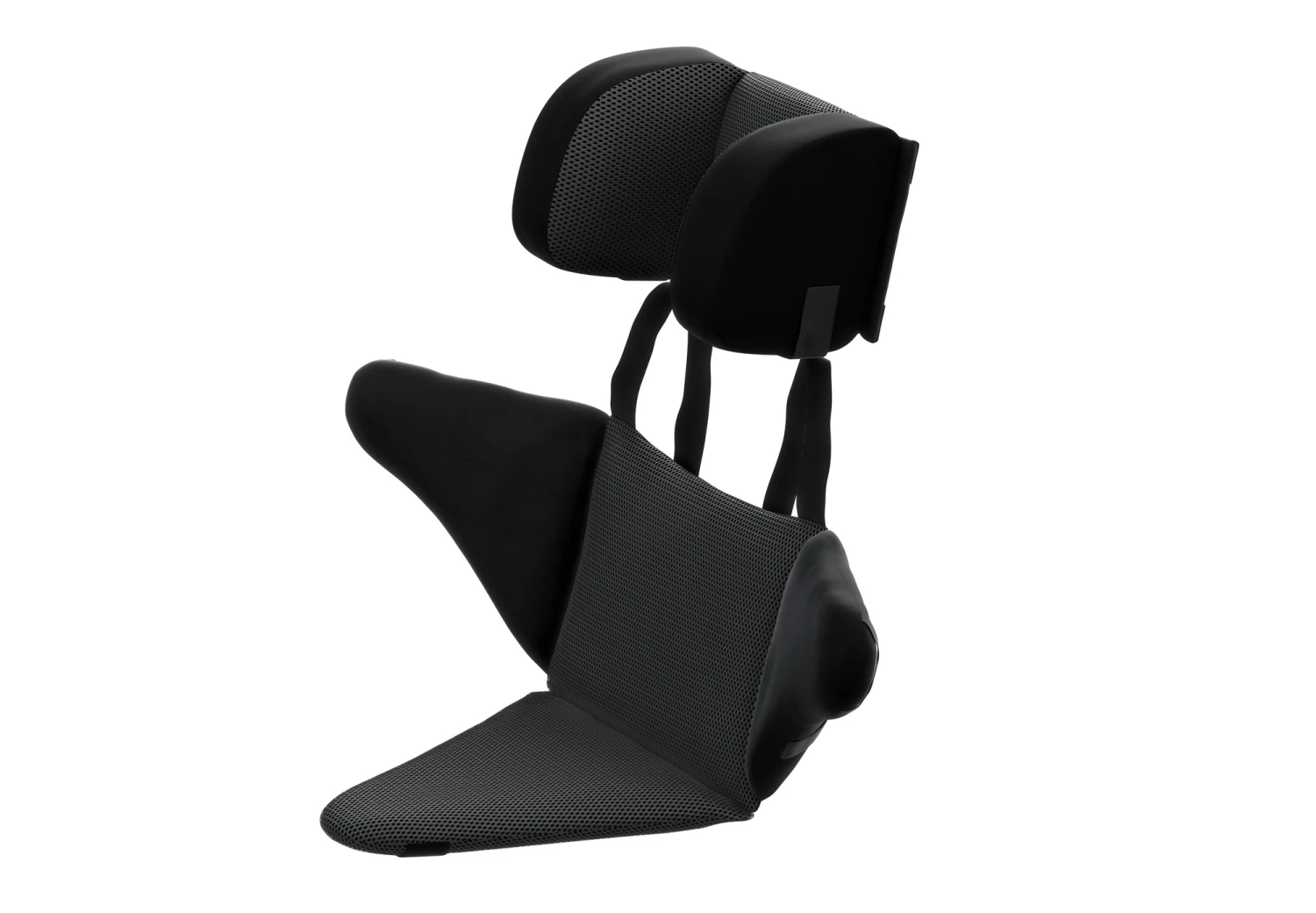 Abnehmbare Kopfstütze ermöglicht das Tragen eines Helms