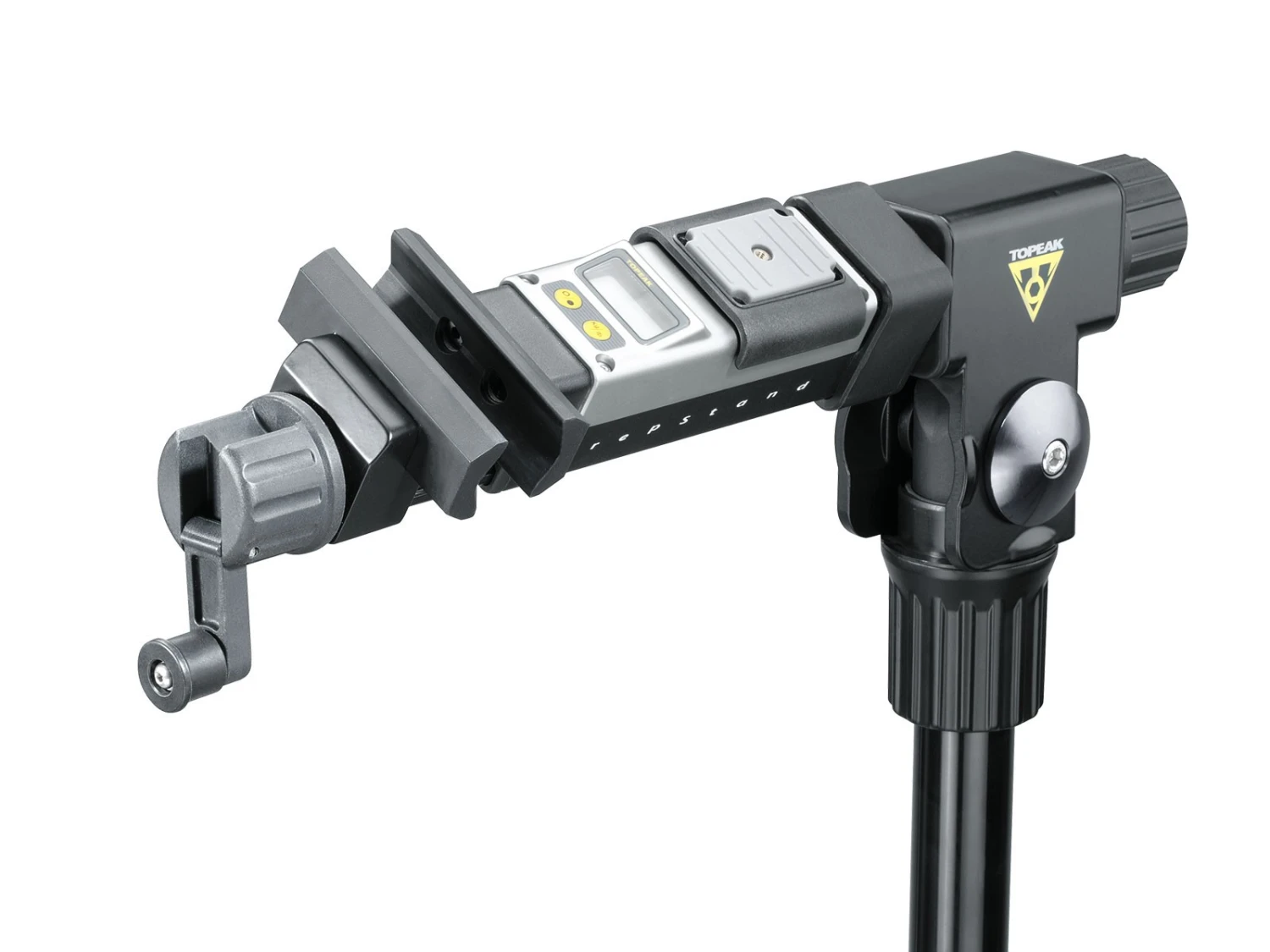 Profi-Montageständer mit eingebauter Digitalwaage. Besonders standsichere Dreibeinkonstruktion, die bei Nichtgebrauch oder für den Transport platzsparend zusammengefaltet werden kann. Zusätzlicher Kurbelmechanismus zur einfachen Feineinstellung der Klemmweite.