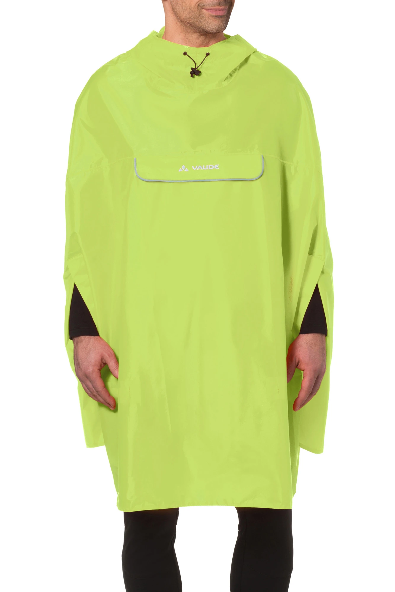 Komm unter die Haube. Der leichte Rad-Regenponcho aus umweltfreundlichem, bluesign®-zertifiziertem Hauptmaterial ist schnell übergezogen und schützt Dich rundum vor Nässe. Er lässt sich komplett in der integrierten Tasche verstauen. So klein verpackt kannst Du ihn für alle Fälle immer dabeihaben. Dieses Produkt ist mit Eco Finish umweltfreundlich wasserabweisend ohne Fluorcarbone (PFC) hergestellt. Das VAUDE Green Shape-Label steht für ein umweltfreundliches, funktionelles Produkt aus nachhaltigen Materialien.